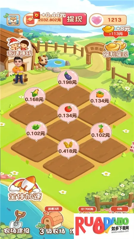 4. 随着等级升高,能解锁更多农田,大幅提升农作物产量。