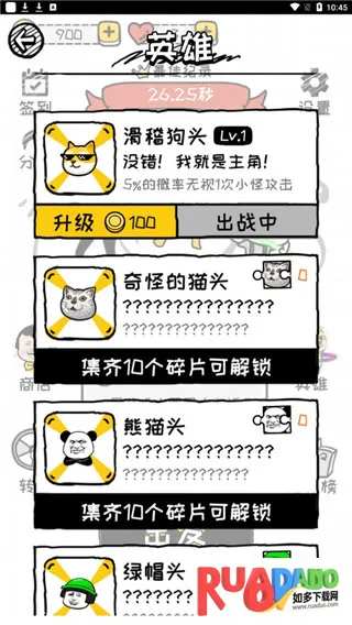 2、点击英雄,选择你想玩的表情包英雄,有些需要收集碎片解锁;