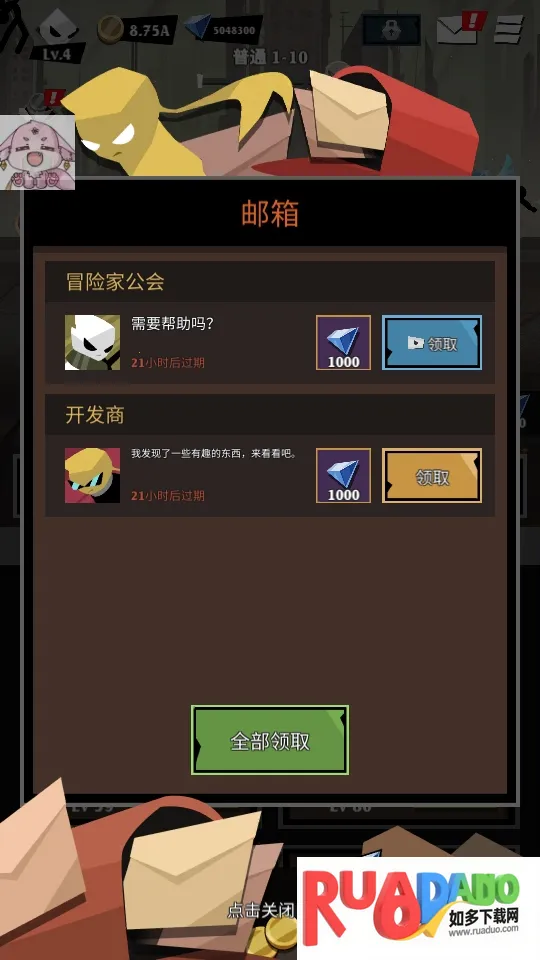 1. 离线也能变强,角色自动战斗积累经验与奖励。