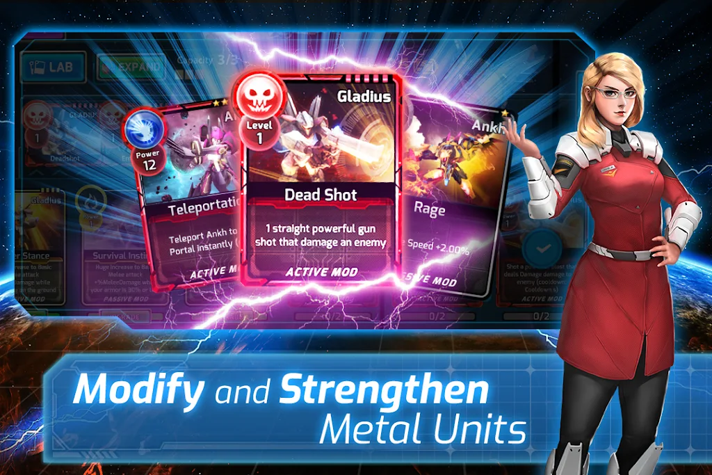2、拥有丰富金属单位阵容,每个都有独特战斗体系,可自由挑选打造个性化风格。