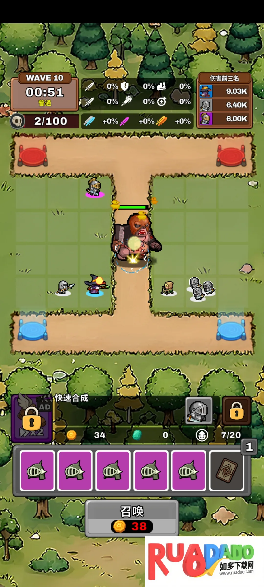 4. 浪潮BOSS挑战紧张刺激,每10波出现巨型BOSS,召唤英雄明智选卡打造防线推进。