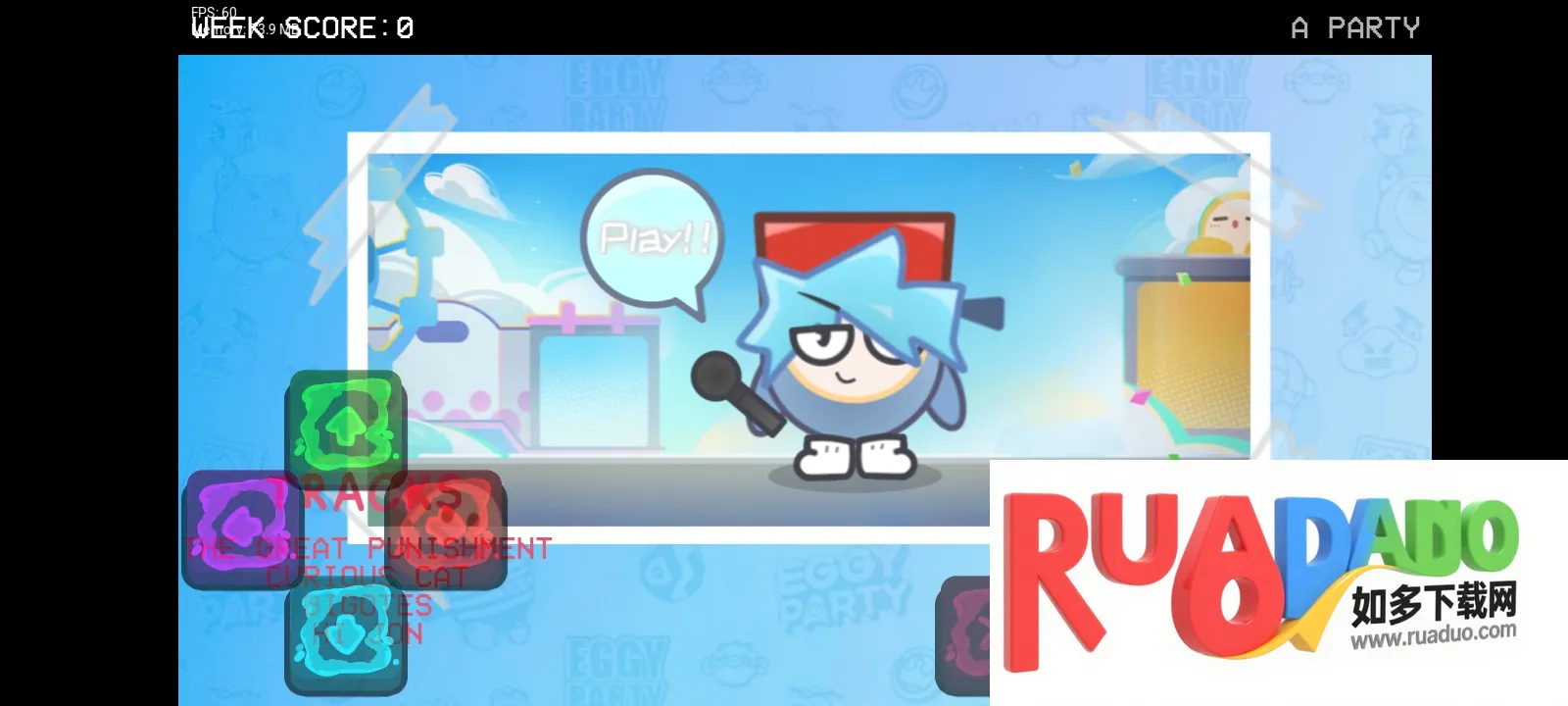 FNF 蛋仔派对最新手机版是玩家自制的蛋仔派对模组。玩法类似原版,与蛋仔 PK,按按键提示随节拍点击完成动作触发连击,有多种可爱蛋仔角色,关卡音乐风格多样,玩家要精准点击音符让蛋仔完成舞蹈动作。