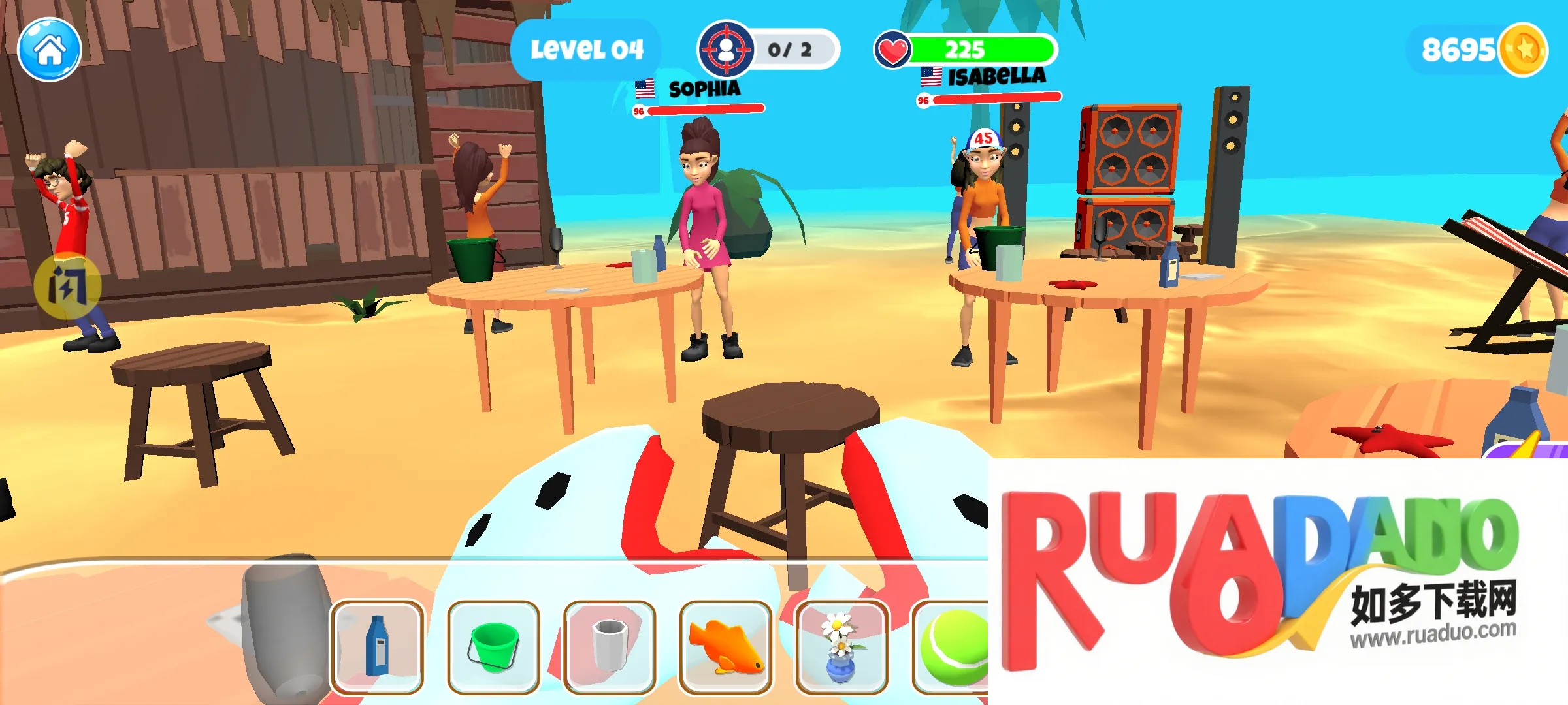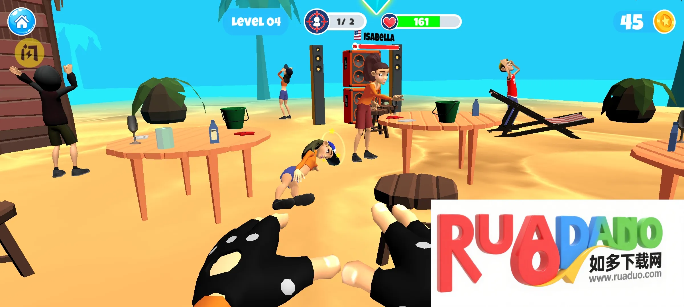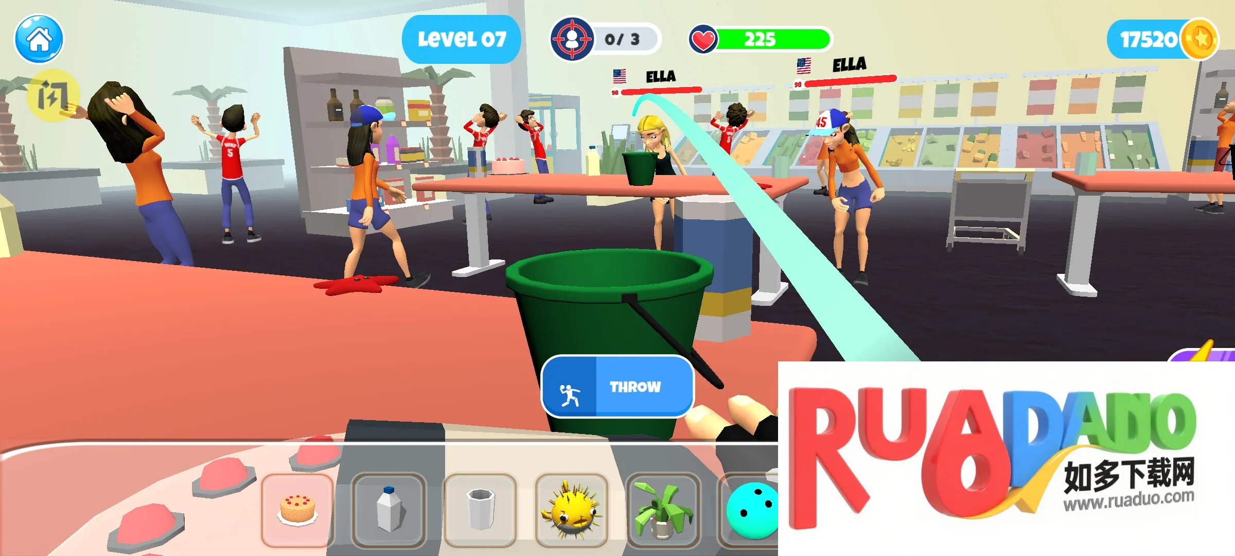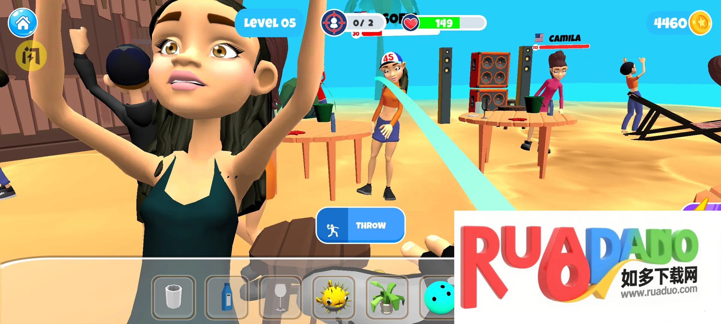2、可精准瞄准、投掷物品,砸烂周围一切击败对手,制造混乱。