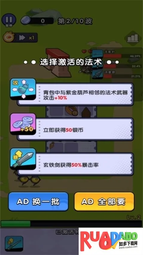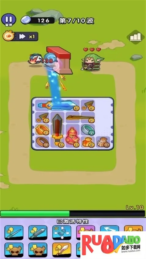 2、可自行调整游戏速度,召唤英雄阻挡怪物进攻。