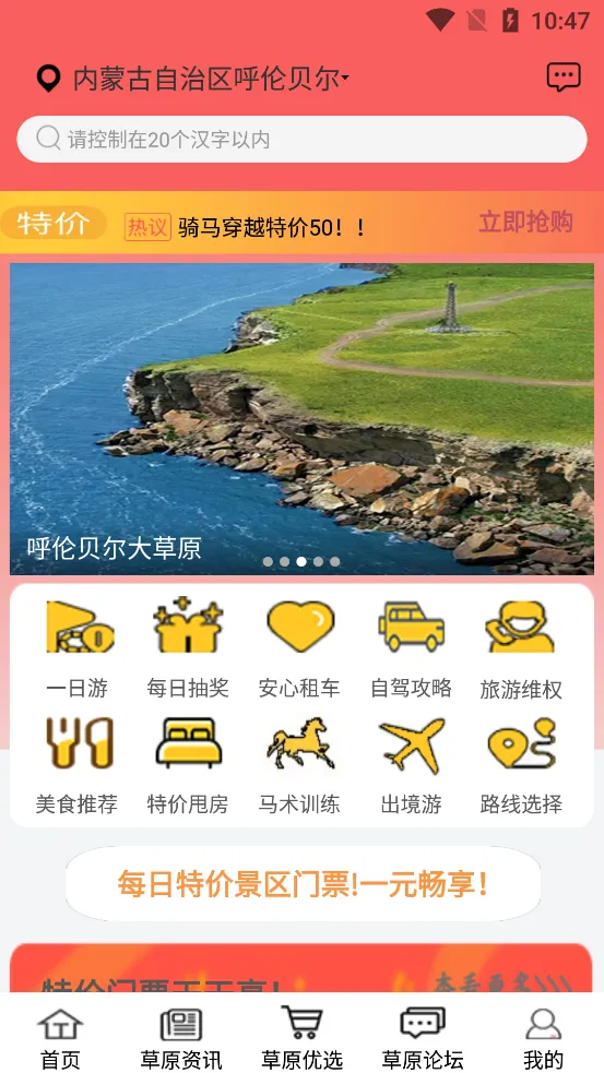 畅行呼伦贝尔最新手机版是为赴呼伦贝尔游客打造的应用。涵盖旅游攻略、路线查询、酒店机票预订等功能,有本地美食推荐与福利活动。提供一站式服务,还有私人管家,助用户轻松规划行程,享受便捷旅行 。