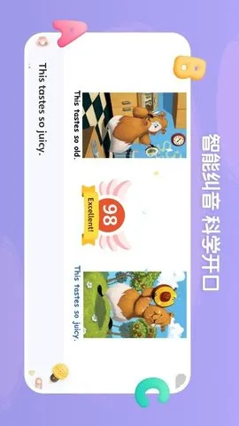 3、融入智能语音评测技术,能准确评估孩子发音语调并给予反馈。