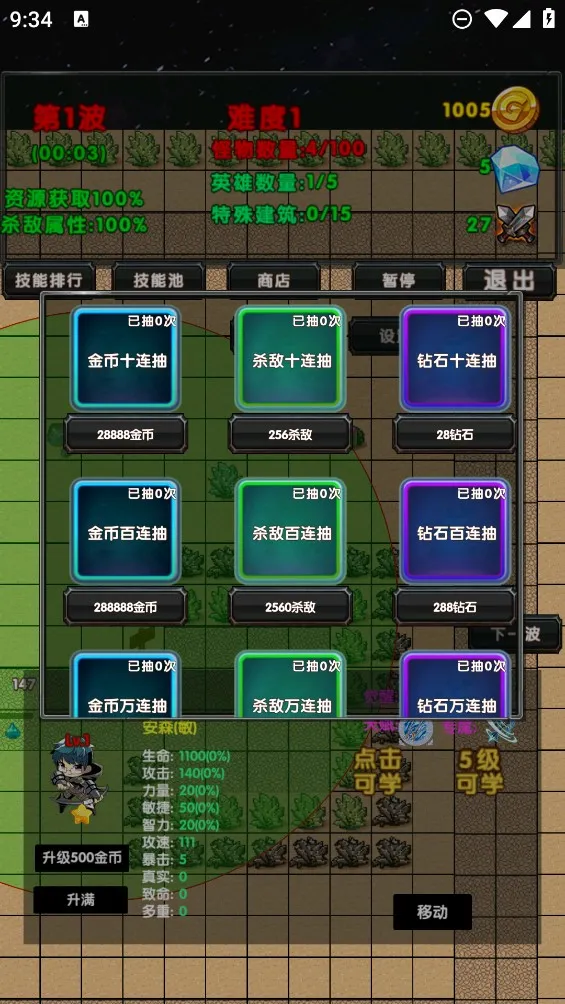 2、拥有多个英雄和上百种技能,能自由搭配,玩法丰富。