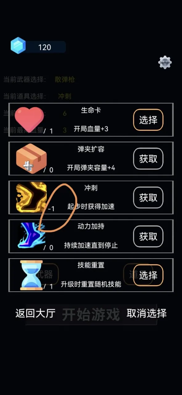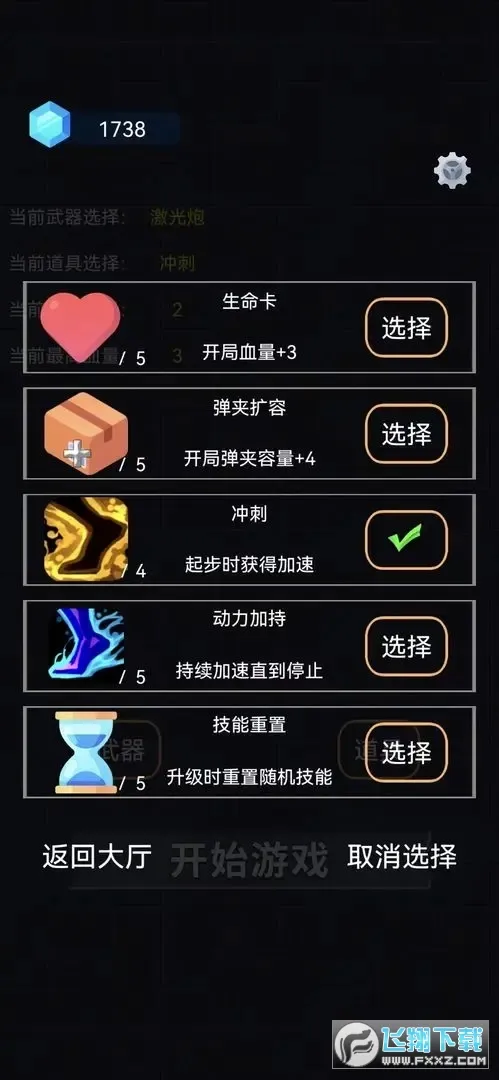 2. 作为Roguelike小游戏,内置七款武器和80项技能,可随意组合,以最优搭配勇闯地狱关卡。