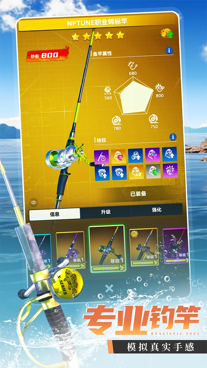 3. 品牌渔具还原:收录多款知名品牌渔具,真实再现其设计,体验真实乐趣。