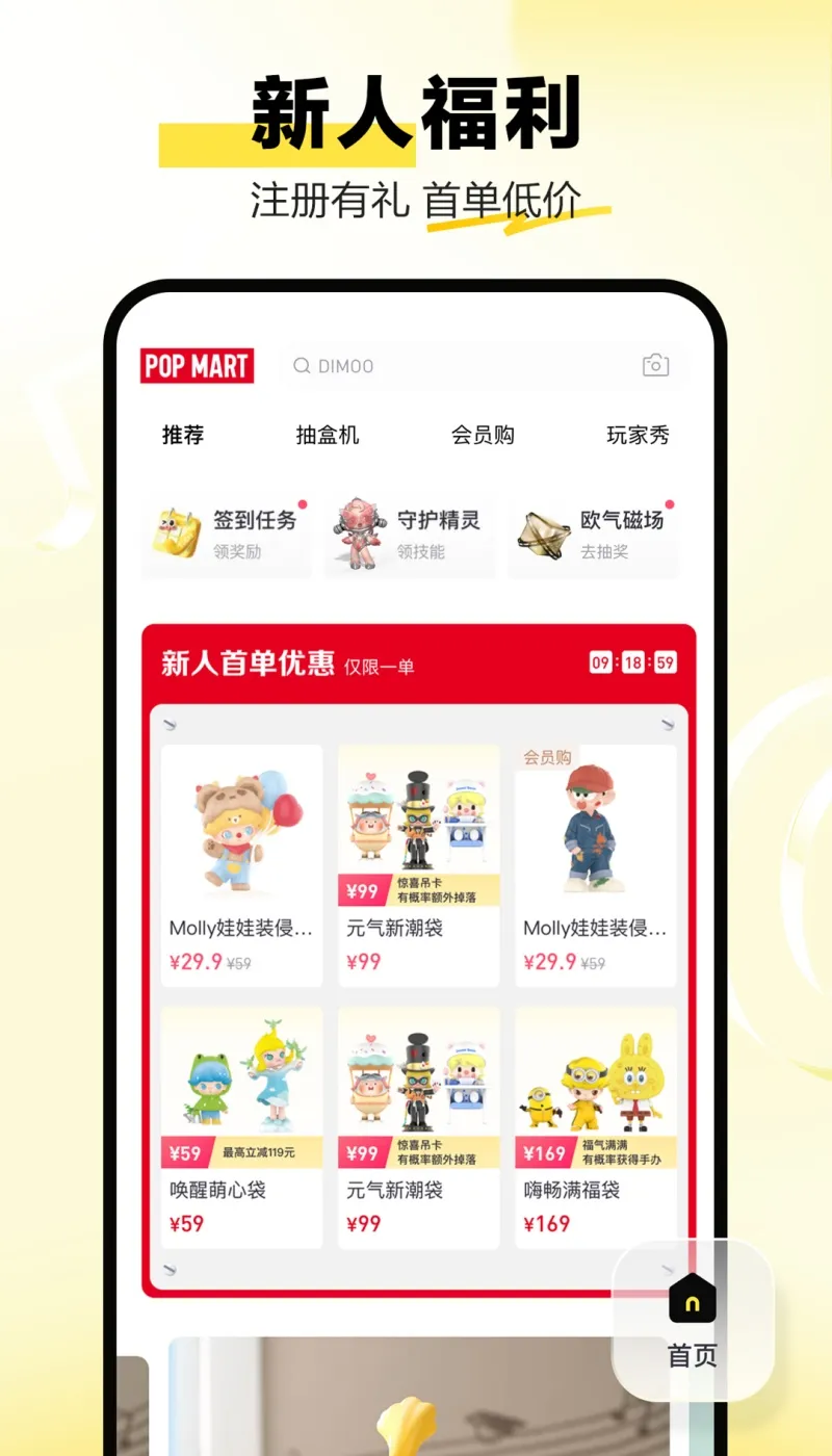 4、玩法趣味十足:有守护精灵养成等游戏化功能,还有抽盒排队等玩法,增添购物乐趣 。