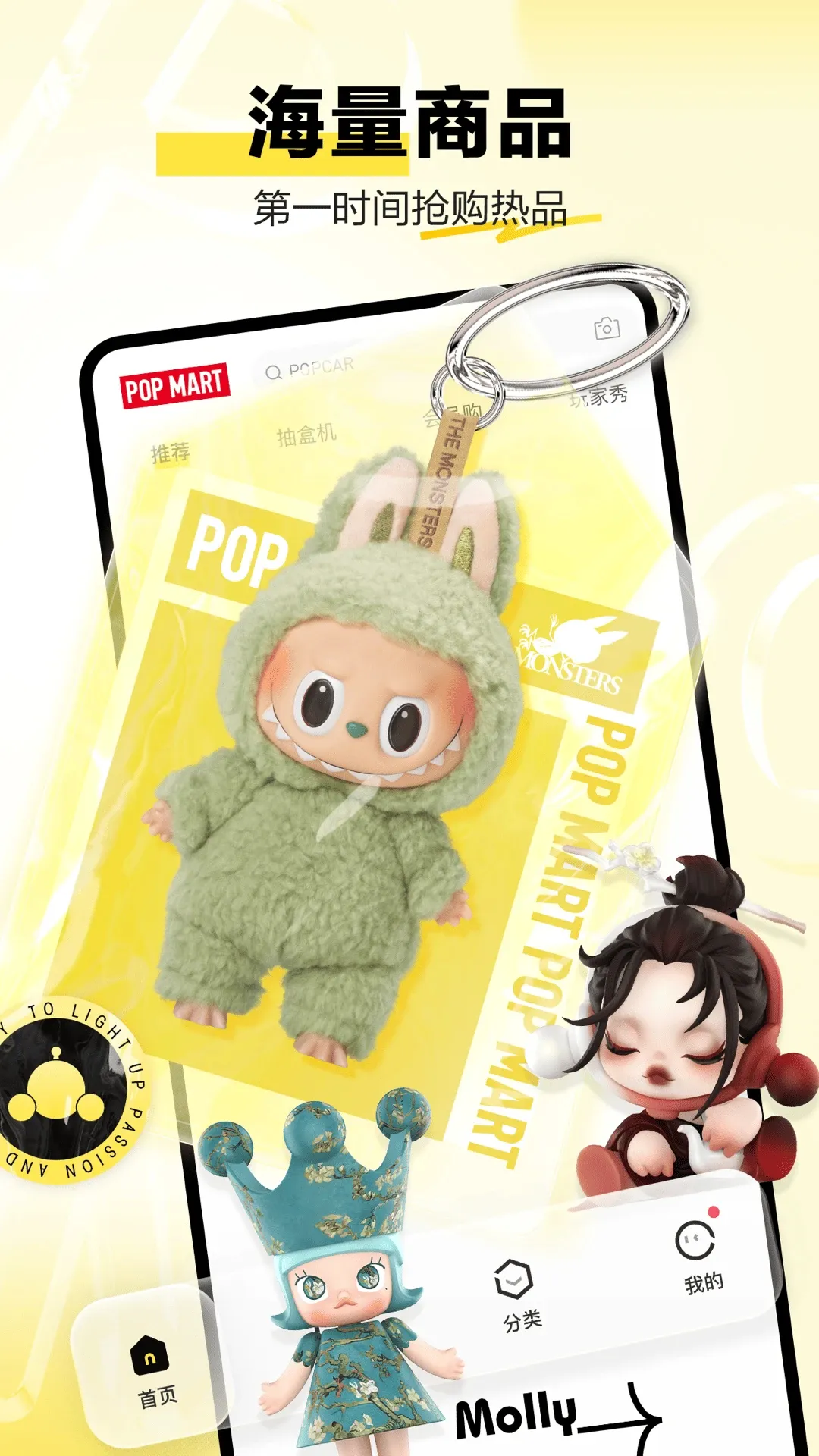 泡泡玛特 APP 由天津泡泡玛特文化传播有限公司打造,是潮玩爱好者的线上乐园。这里潮玩海量且周周上新,有创新抽盒、购物、社区等功能,还能养成守护精灵,满足潮玩收藏、交流、娱乐等多元需求 。
