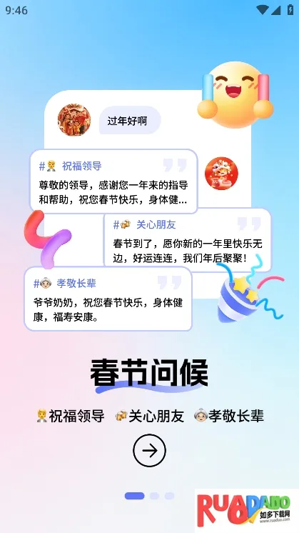 2、场景赋能:内置丰富节日祝福、恋爱助攻、职场生存等模板,满足多场景沟通需求。