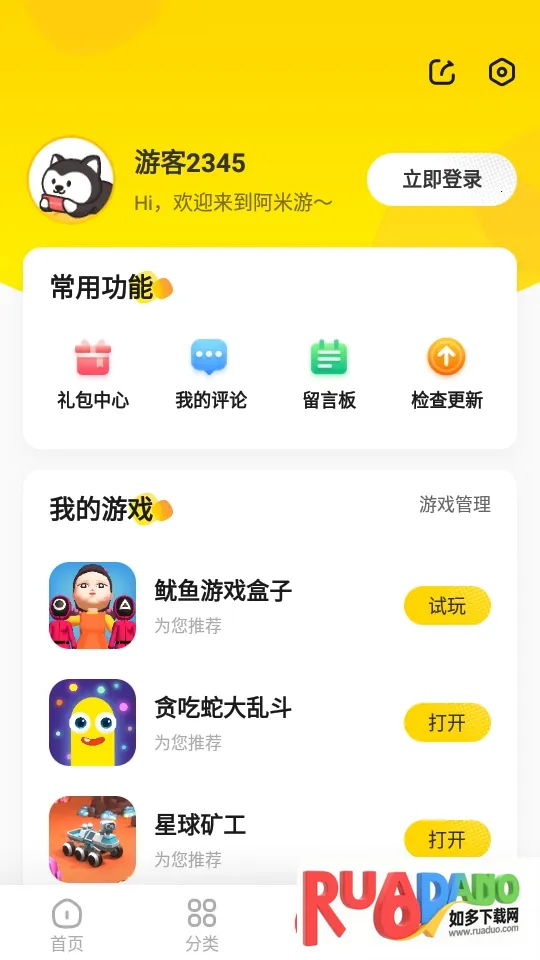 阿米游是一款出色的游戏盒子,汇聚海量游戏资源,涵盖多种类型,每日更新。无需安装即点即玩,有精彩视频可先看后玩。具备社交、分类搜索等功能,安全无广告,还能免费获福利,助玩家告别游戏荒 。