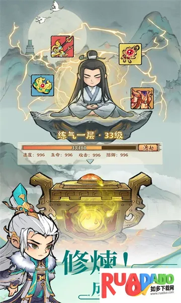 1、卡通风格修仙,开启从零修仙路,体验独特修仙乐趣。
