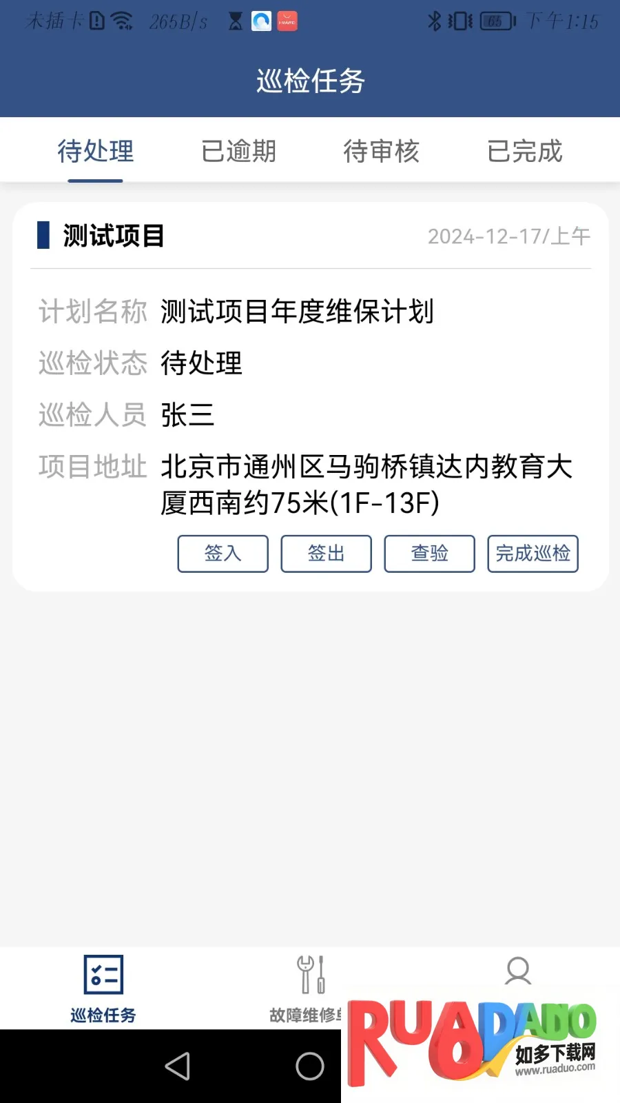 2、支持在线签到,记录日常巡检任务信息。