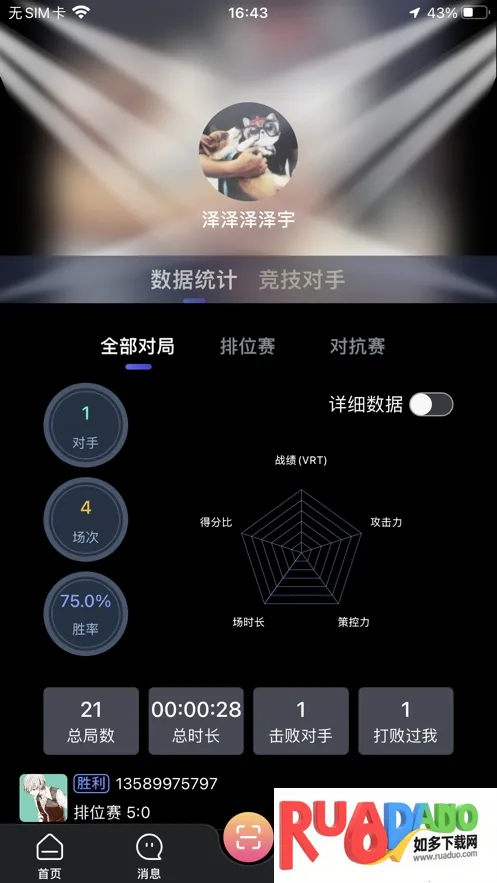 3. 有细致的数据统计,从对战记录到战力值评估、胜率计算等,助用户了解自身实力。