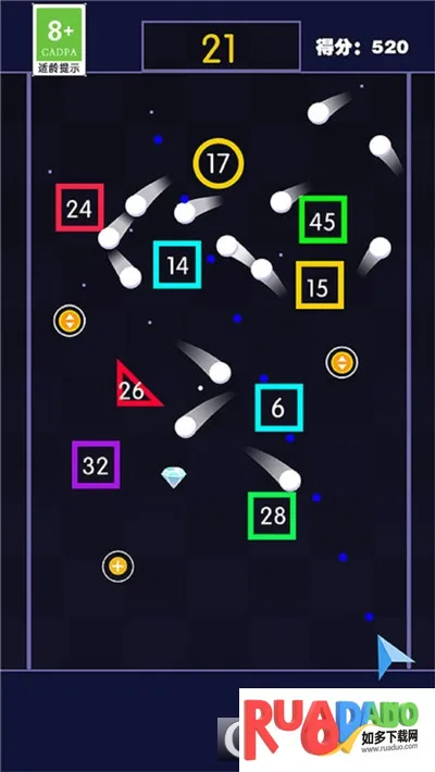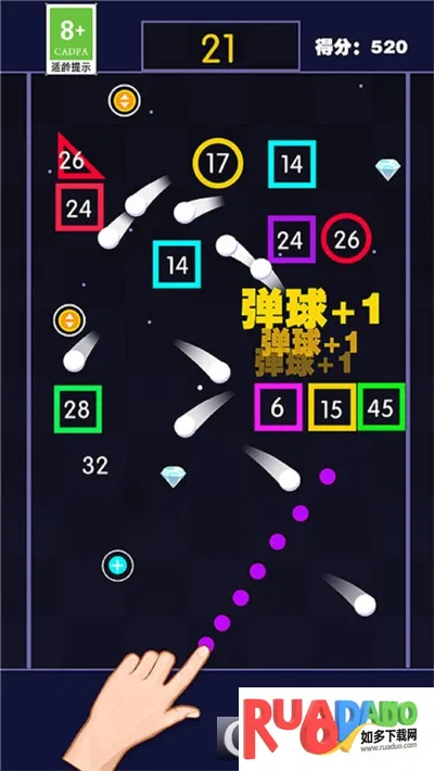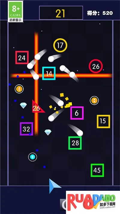 1、采用创新的重力感应玩法,通过晃动手机控制弹球,操作灵活。