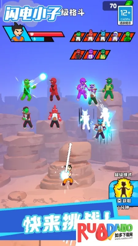 闪电小子手机版是款独特跑酷游戏。玩家操控黄色小人与其他颜色小人竞速,赛道涵盖海陆空,需变形汽车、直升机等克服障碍。玩法新颖,难度递增,适合全年龄段,带来刺激欢乐的变形跑酷体验 。