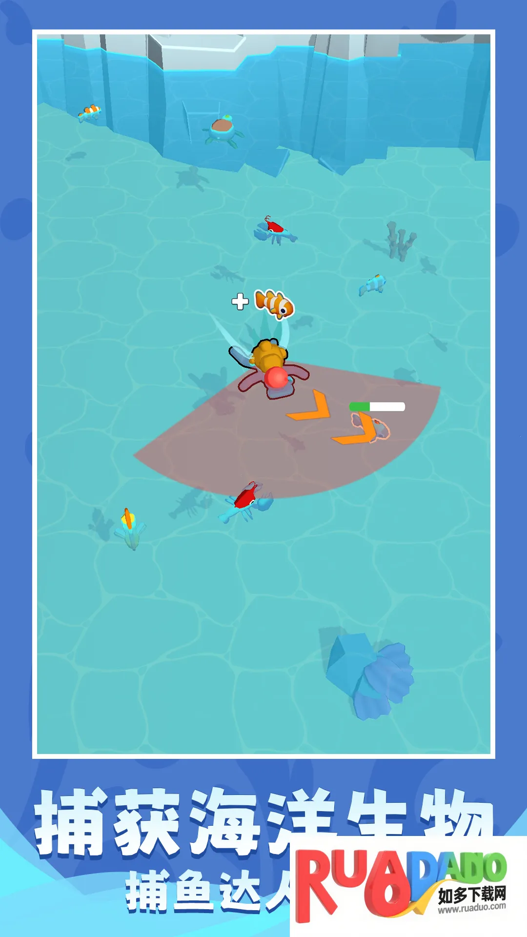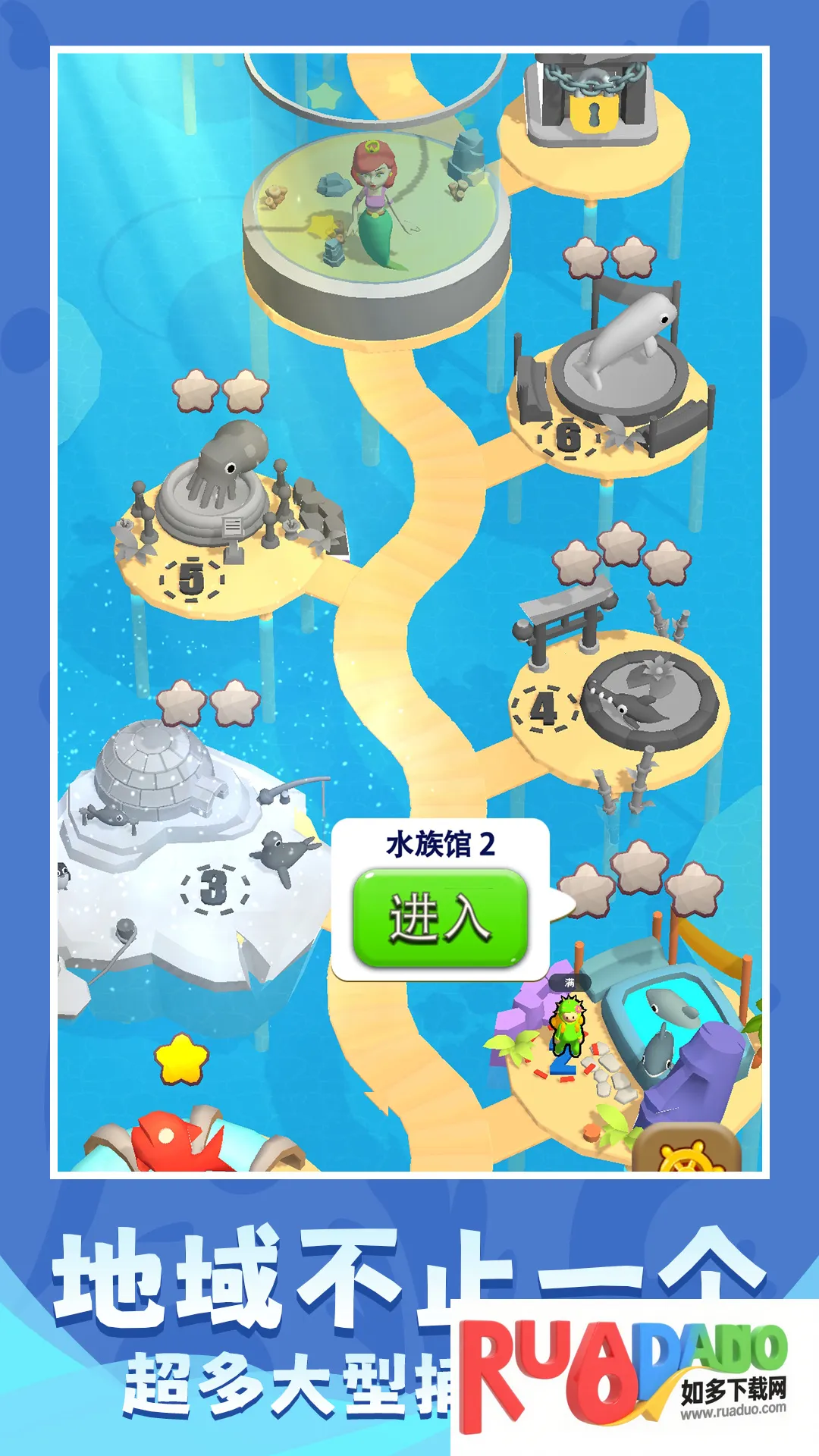 1、拥有各种各样的鱼,可自由捕捉海洋生物,扩充水族馆。