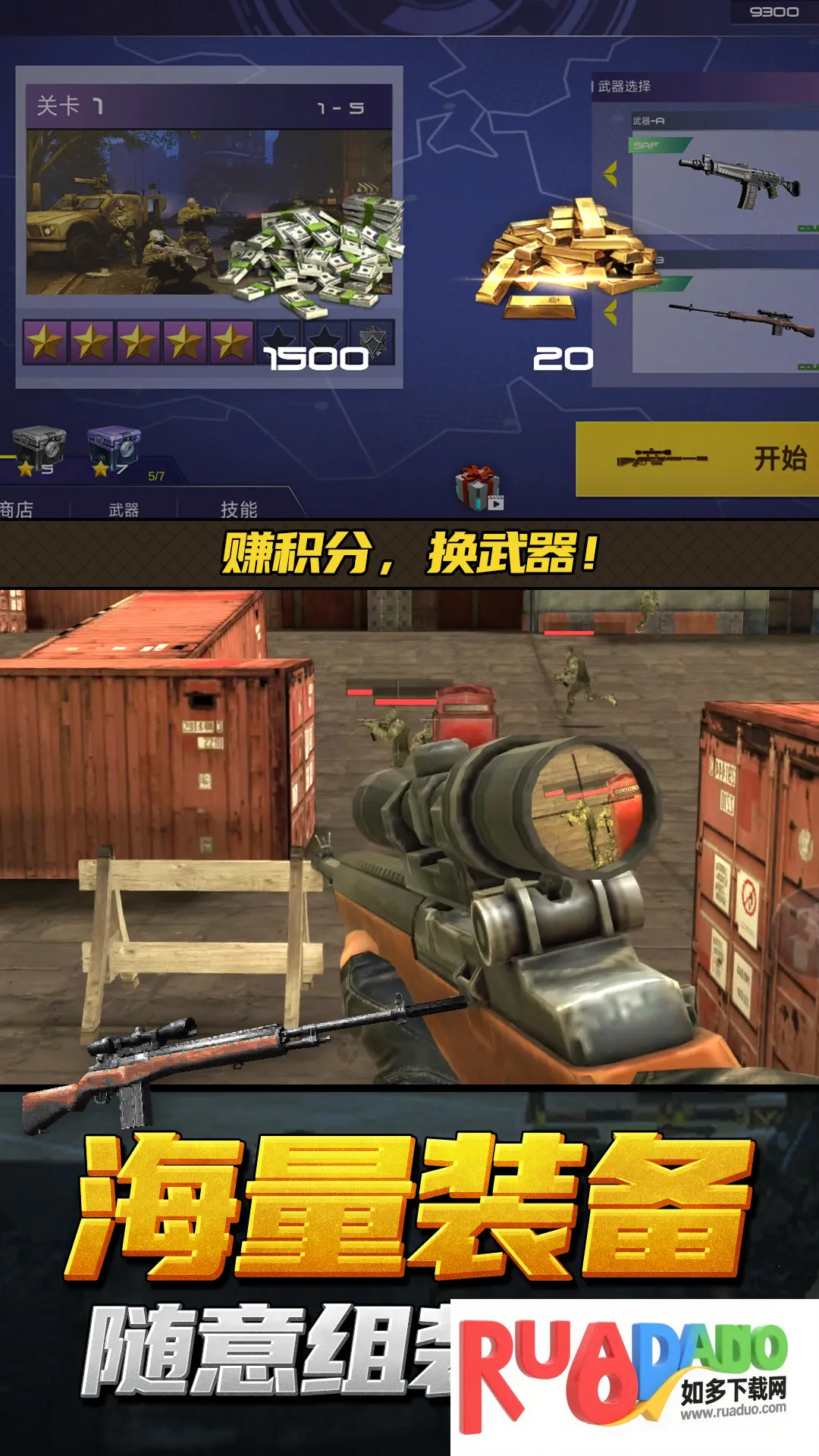 4. 不同场景、大量地图,可解锁炫酷枪械,玩法丰富。