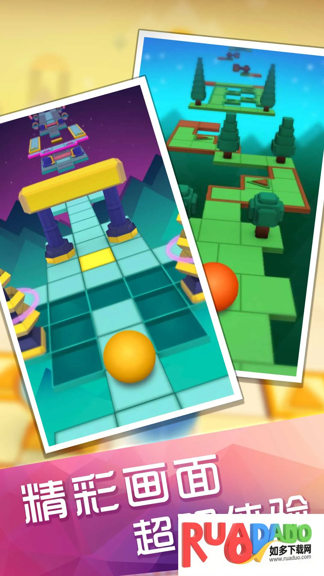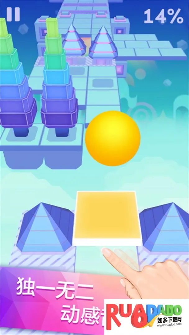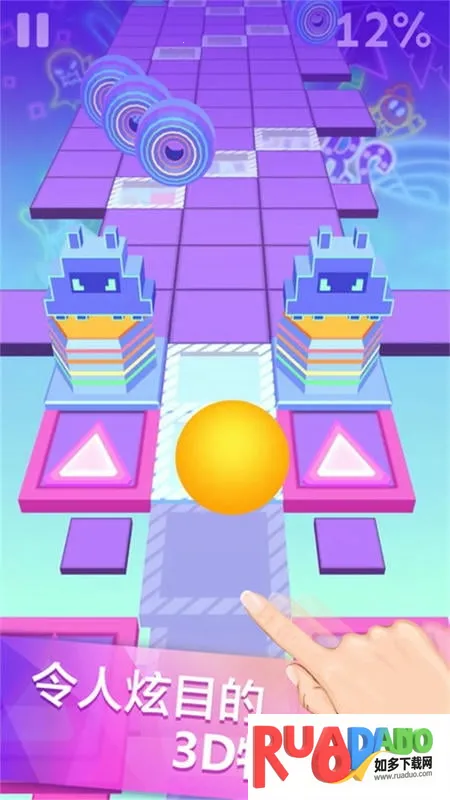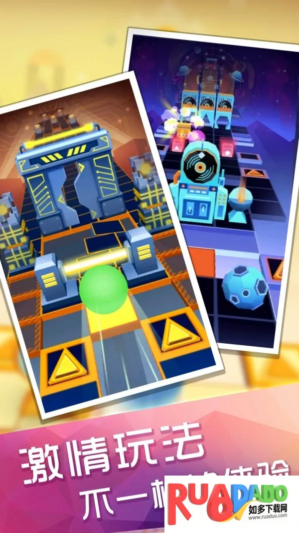 2. 极具动感的音乐游戏,需根据音乐节奏点击屏幕,保证球球避开障碍。
