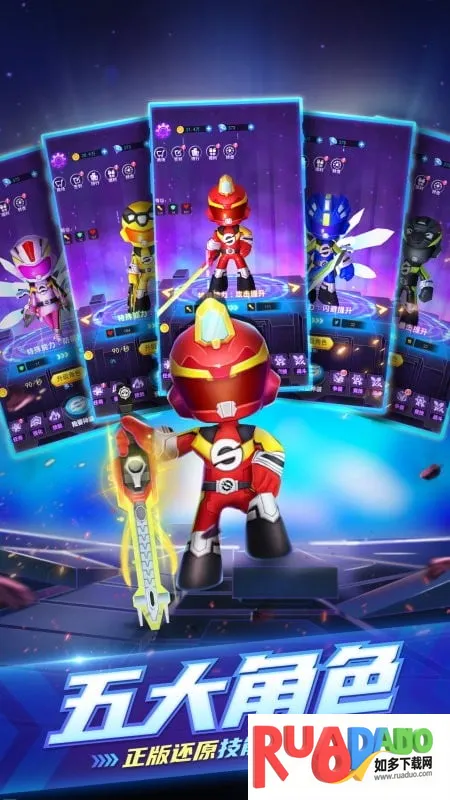 1、游戏以3D技术打造,忠实再现动画中的五大英雄形象,将特摄剧精髓转化为游戏角色,特效和场景设计精心,带来视觉盛宴。