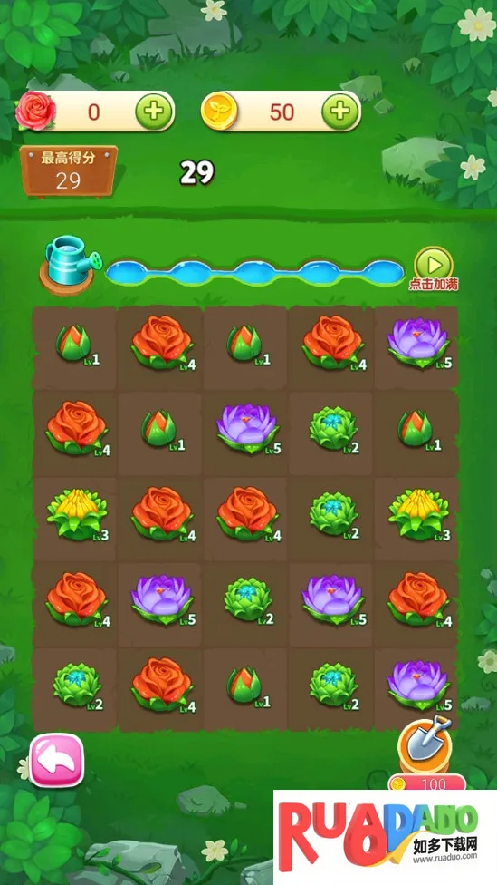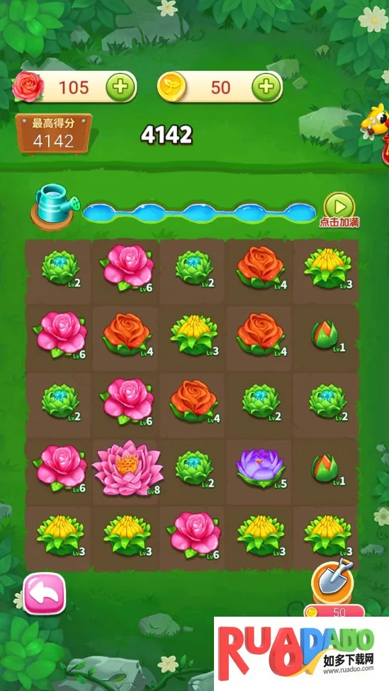 3. 合成培育有趣,三个相同等级花朵合并可升阶,解锁稀有花种,满足收集欲与成长成就感。