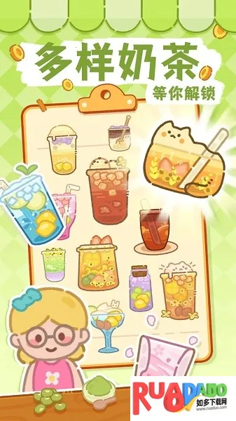 1、这款游戏画风可爱,背景音乐温馨治愈,能让玩家沉浸在轻松愉悦的氛围中,感受制作奶茶的乐趣。