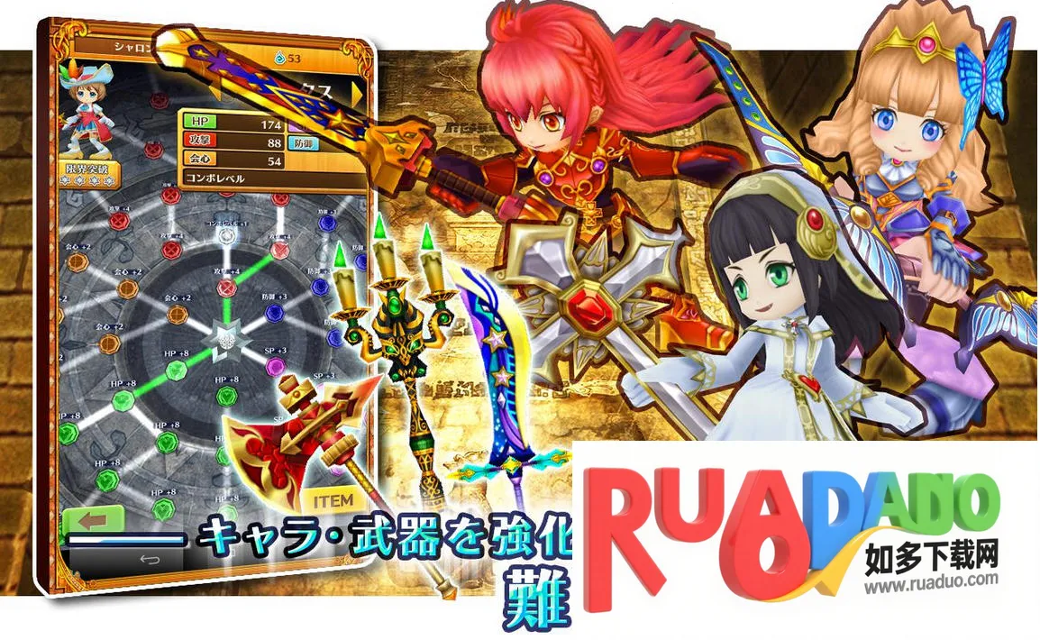 3、玩法丰富独特,无体力限制可无限闯关,有4人实时协力战,还能建设飞行岛、点亮幻灵板养成角色。