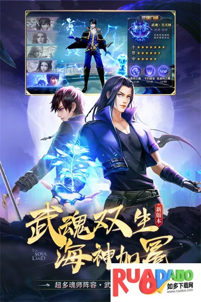 3、共有四名角色,每个角色有数种武魂可供选择,独特魂环系统让角色达到瓶颈吸收魂环后可继续升级,不同等级魂师能吸收不同年限的魂环,更有各种年限魂兽及相应魂技。