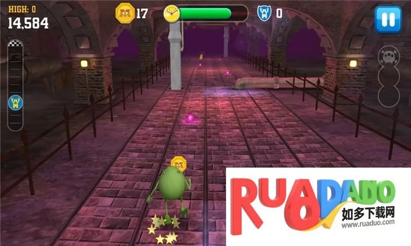 《怪兽大学》是一款动作跑酷手游,采用45度倾斜视角,人物自动前行。玩家以手势操控人物闪避、跳跃、滑行,躲避障碍追捕羊怪,有平衡判定玩法。难度友好,可收集校徽,有道具要素,能升级解锁道具。