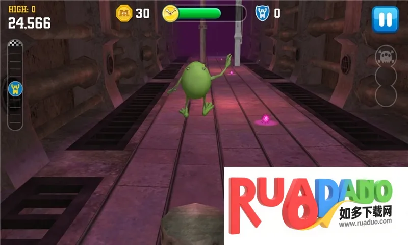 2、采用45度倾斜视角,人物自动前行,操作是熟悉的手势操控,划动屏幕控制人物闪避、跳跃和滑行。
