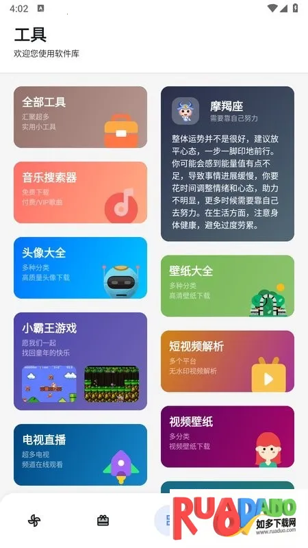 1、资源丰富:收录了当前热门软件资源,类型众多,不仅有海量实用软件、MOD 手游、游戏辅助,还有小说、漫画、视频等,全方位覆盖娱乐与使用需求。