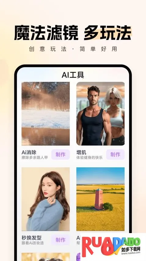 1、玩法多样,支持一键体验多样化玩法,能让用户趣味畅玩,实现多种风格筛选。