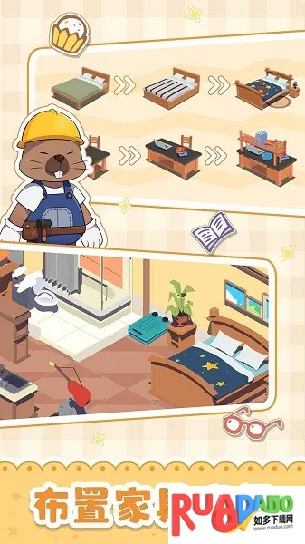 2、能收集不同饰品装扮房屋,还可自由装饰设计公寓,打造专属风格。