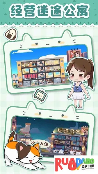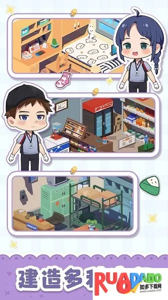 1、这是一款模拟经营游戏,在游戏里你既是公寓管理员,也是租客的知心大姐姐,要建造单人、男生、女生、标准、复式等不同类型公寓房间,还要建造餐厅、快递驿站等商铺服务租客,提高租客满意度获取幸福能量和更高租金。