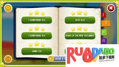 2. 它是一款基于物理原理的弹跳类动作手游,有着不同关卡,还是为准备让孩子和父母了解圣经经文的游戏,能帮助孩子背诵经文。