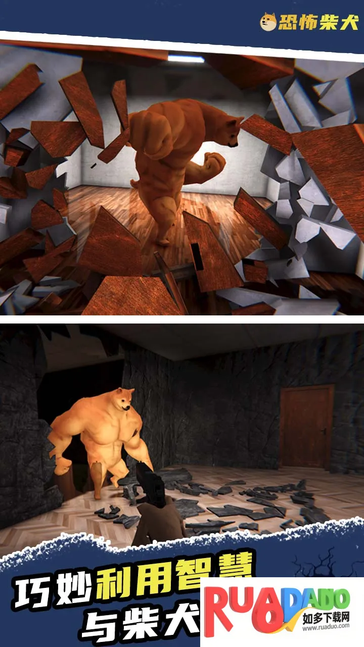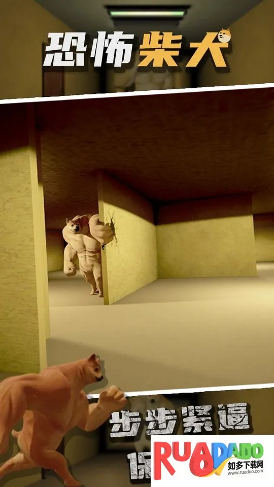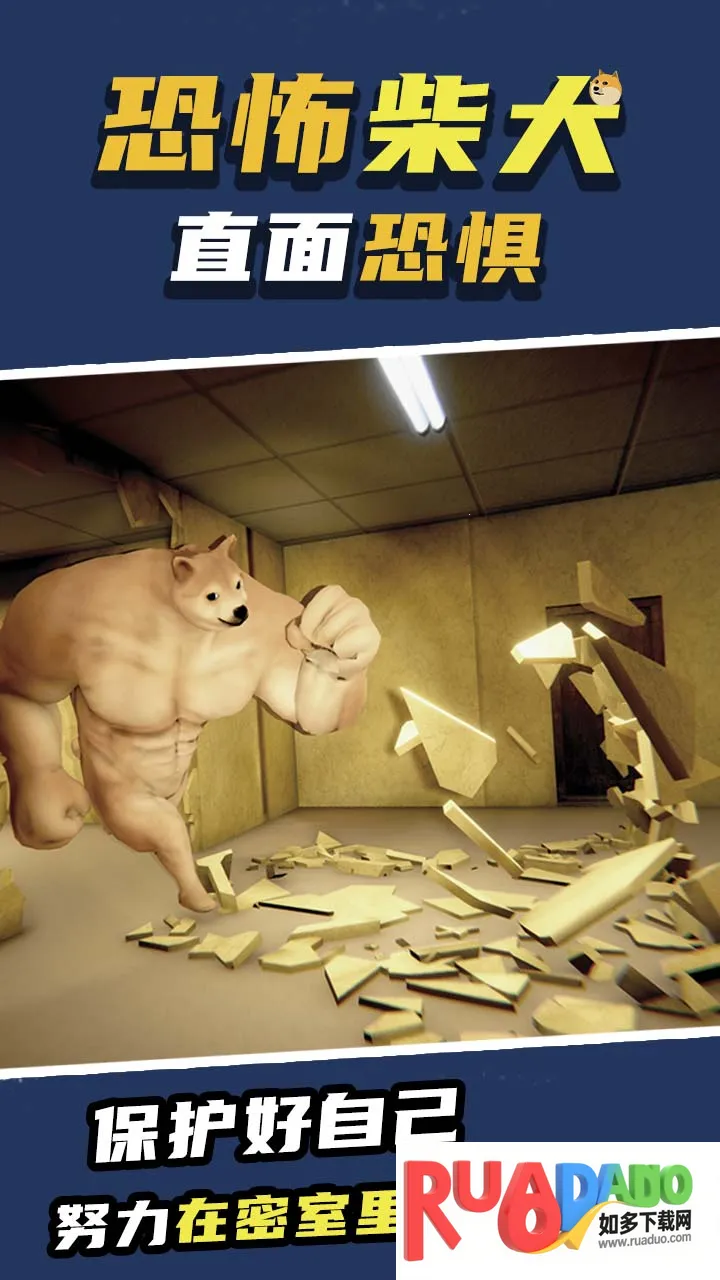 1、恐怖柴犬是第一人称恐怖密室逃生游戏,玩家要在巨大密室与巨大柴犬周旋,寻找有力道具对抗它并找到逃生路线。