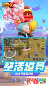 1、游戏中有许多 奇怪的野蛮物种,它们会背起肉串、扛起鸡腿、骑着巨龙去战斗,还有仙人球棒、鲨鱼剑、蜥蜴斧等不能捡的魔盒,各种奇怪的东西数不胜数,动感音乐还会引发野蛮人尬舞。