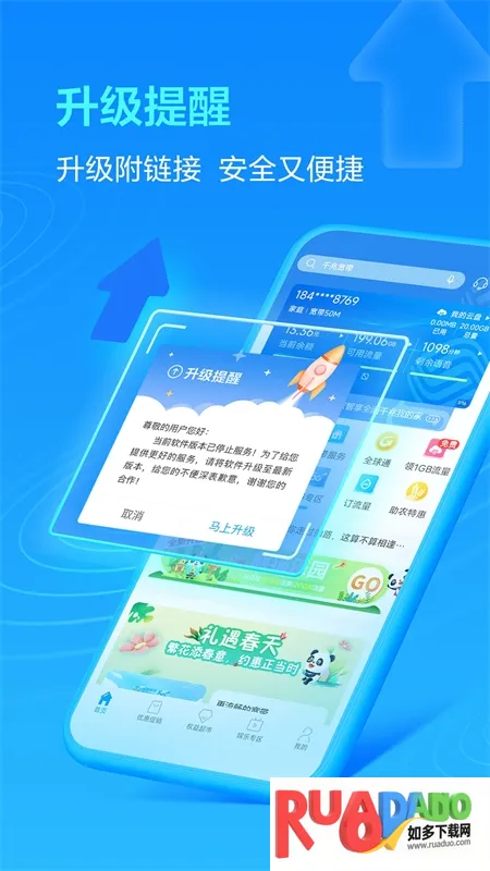 4、该版本进行了全面视觉升级,首页布局清晰,7×24小时自助服务,个人中心优化,方便管理账户信息;还有电子发票功能,充值开票简单高效。