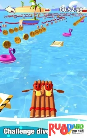 1、水域场景丰富立体:采用三维立体建模技术,河道设计与障碍物布局有丰富层次感,动态水流系统会改变流速与流向,增加划行挑战性。