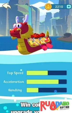 4、创建金币收集机制,河道金币可积积分,连续收集激活连击奖励,解锁特殊外观皮艇款式。