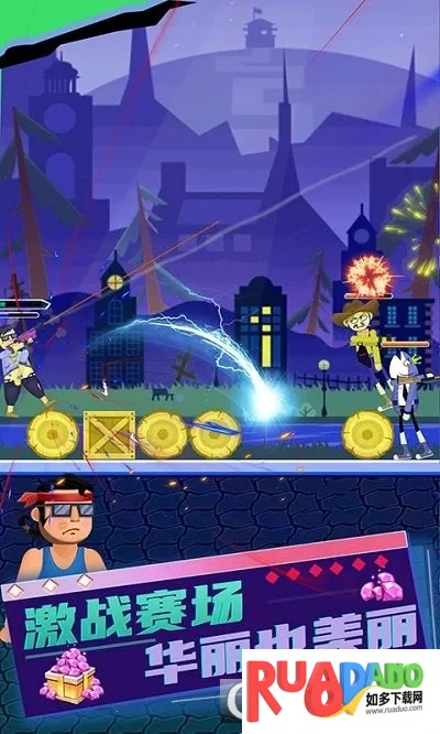 2、十二个主题竞技场景:如未来科技都市、复古机械工厂、星际太空站等,每个场景有可破坏掩体与特殊互动机关。