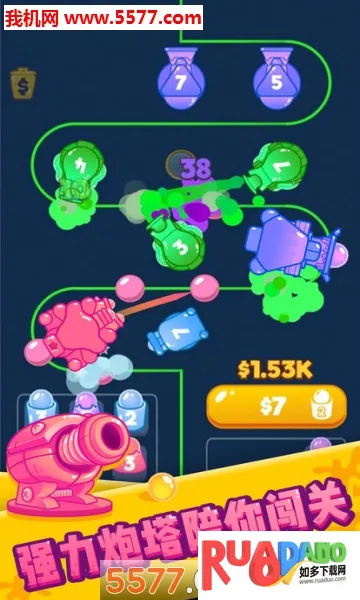 1、炮塔实力强劲,可升级提升威力伤害与射击速度,打怪轻松。