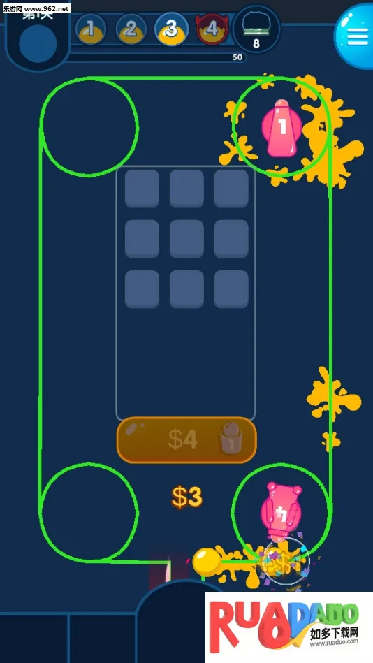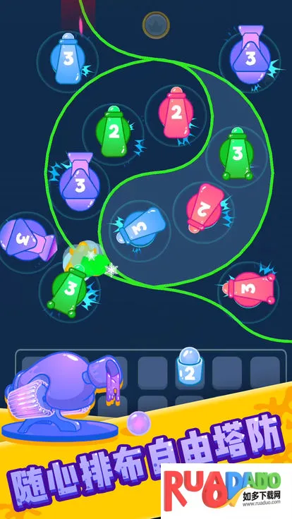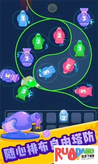 3、喷涂屏幕乐在其中:收集升级不同的喷涂道具,击败源源不断入侵的泡泡怪兽,颜料飞溅快速融合,尽可能尝试升级完成任务。