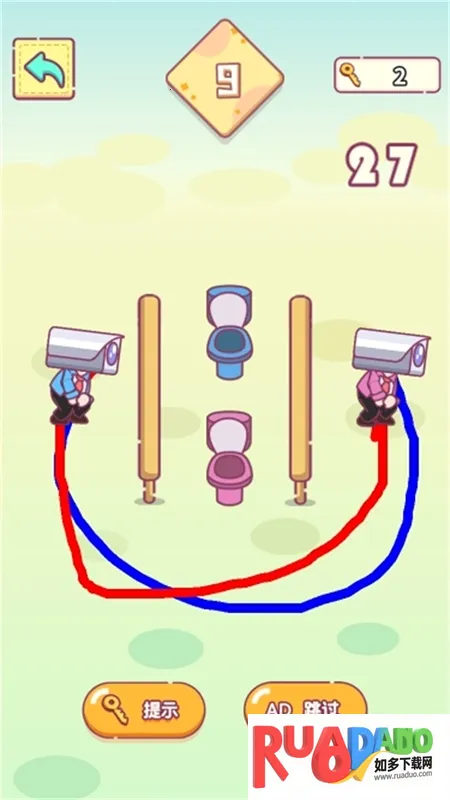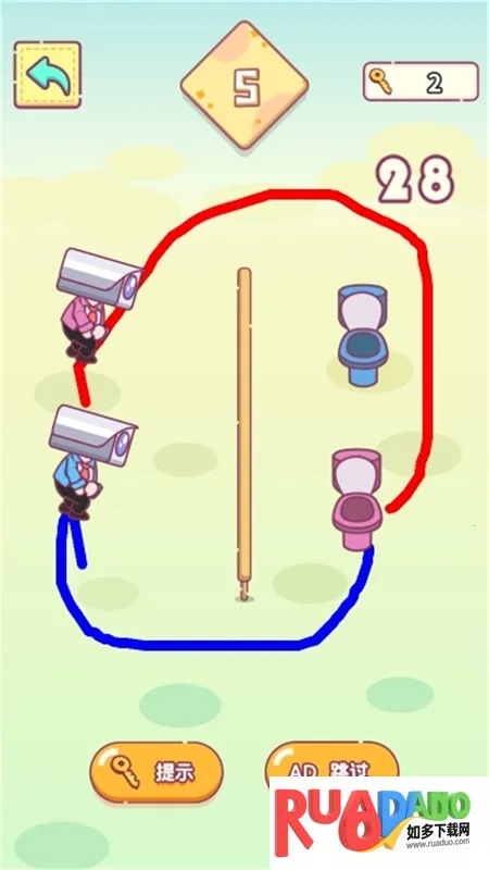 1、游戏融入绘画解谜与策略元素,玩家需通过画线方式争夺厕所使用权,解开与厕所相关谜题才能获得使用权限,凭借智慧和画线技巧解决问题,成功解谜后在地图画线条创造路径。