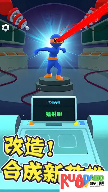 2、玩家能自由搭配材料改造英雄,解锁镭射眼等独特超能力,打造专属强力战队。