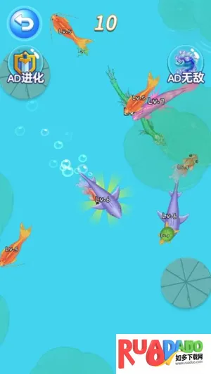 2、生物进化觉醒特殊能力,不同形态拥有独特技能组合,如青蛙弹跳、乌龟防御、鲨鱼冲锋等,通过形态转换可体验多样化战斗模式。