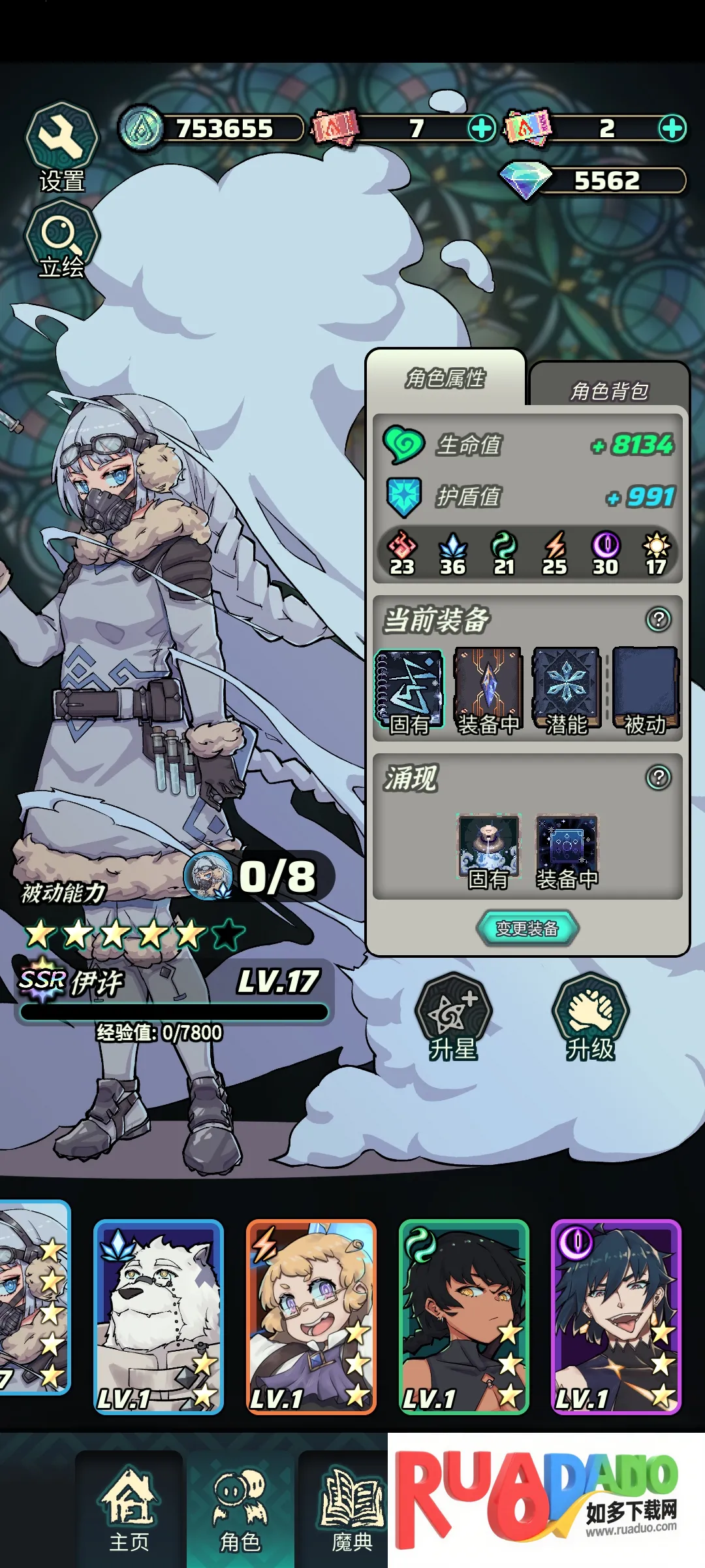 4、丰富养成玩法:能通过战斗资源升级角色、卡牌和魔典,提升实力,每个角色有等级和星级养成线。