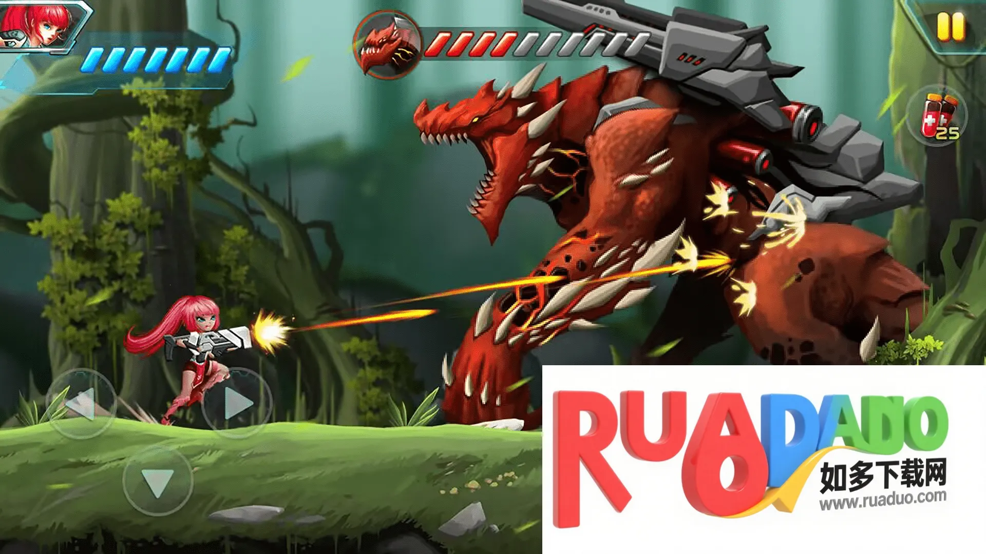 2、游戏玩法丰富,通过虚拟手柄控制角色移动,点击跳跃按钮躲避障碍与攻击,使用射击键开火压制敌人,还能触发手榴弹按钮制造范围爆炸。